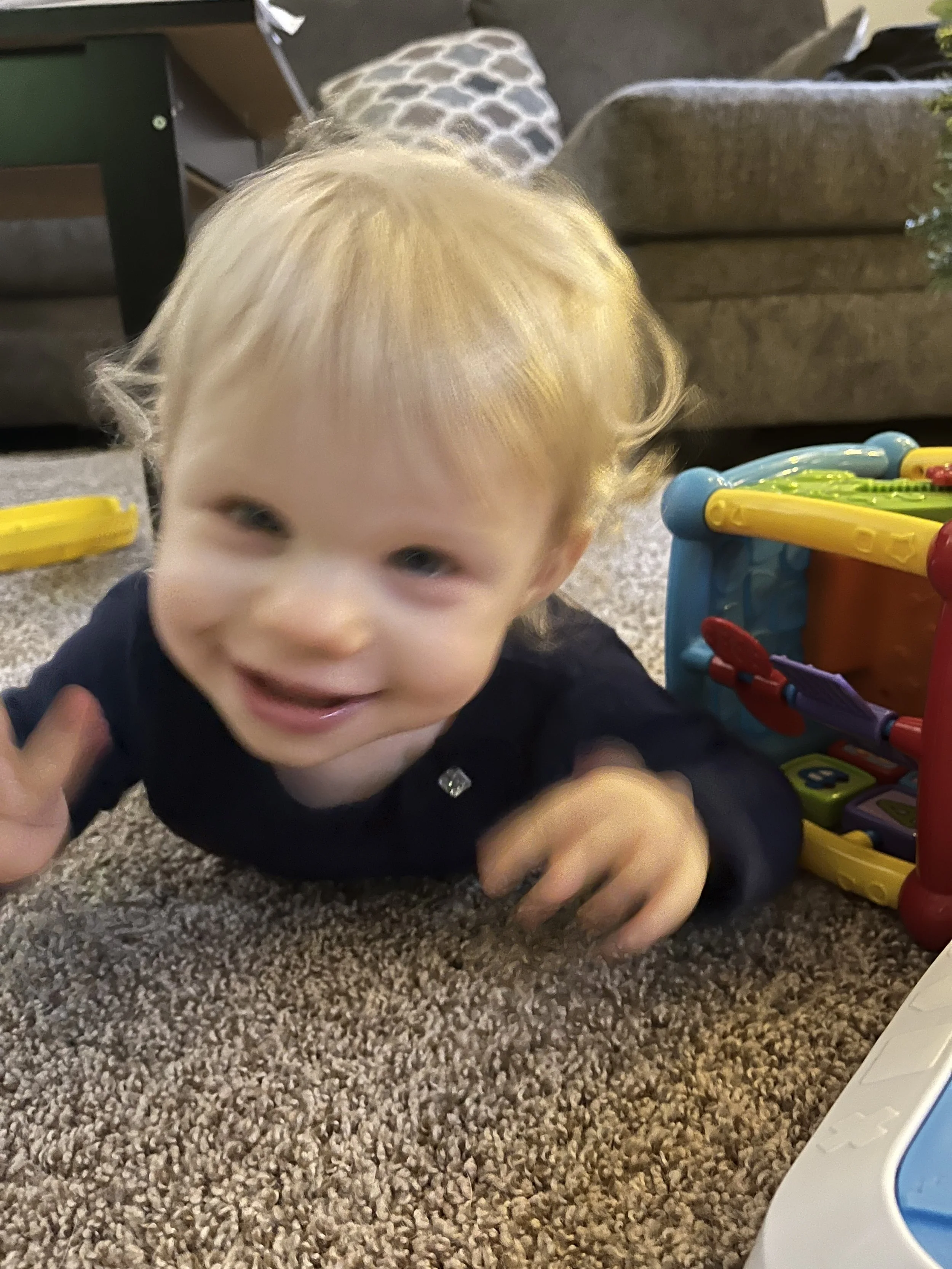All of those appointments have helped us get to where we are today. This time last year, Maddie could barely feed herself with her hands. I remember being so excited that Maddie finally started to roll from her back to her stomach again. Now, there are some meals where Maddie refuses food if we’re feeding her, she wants to do it herself. If we leave the room for two minutes, we have to brace ourselves to where Maddie has ended up. One day I thought I lost her, but she was hiding under the futon in the spare room.